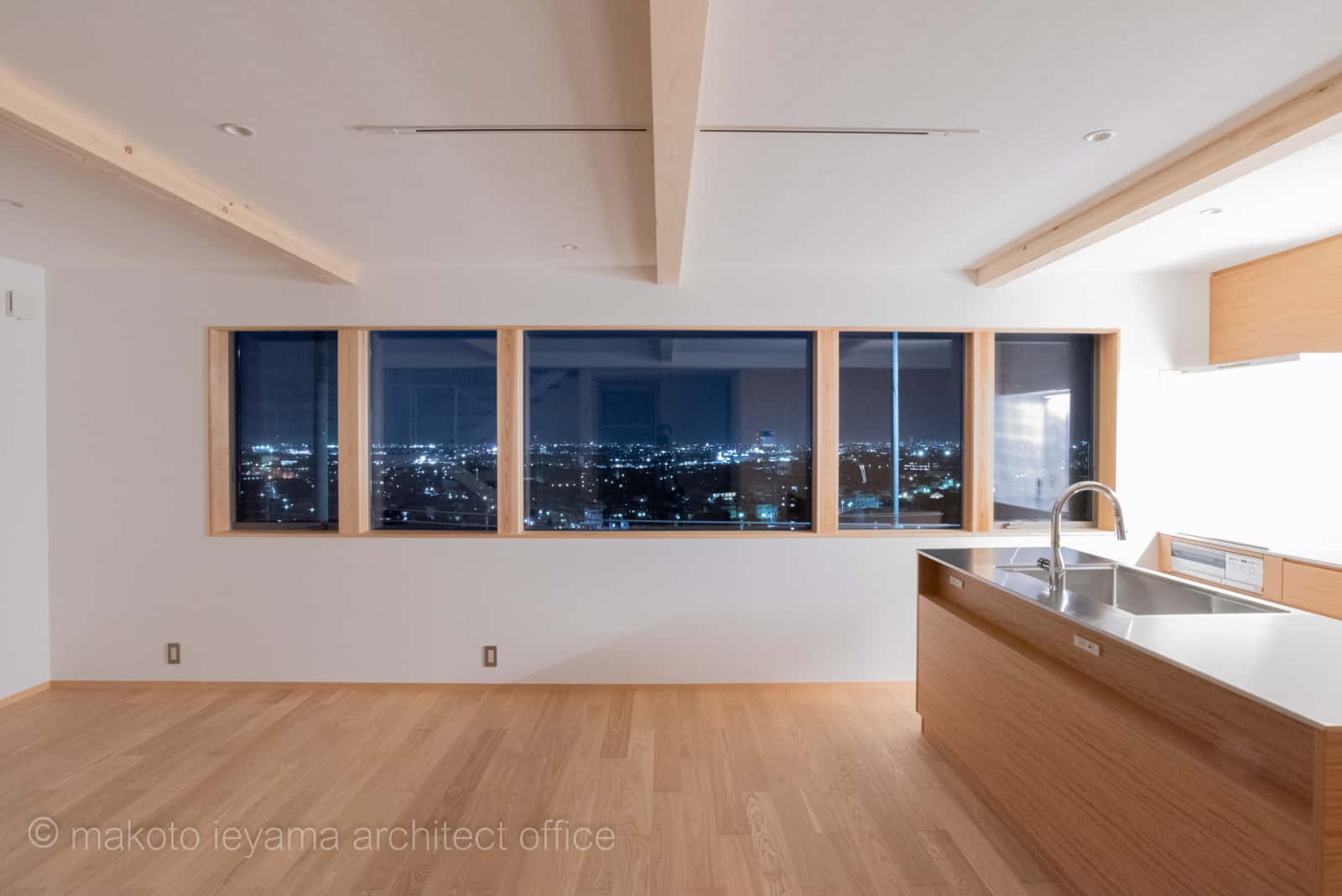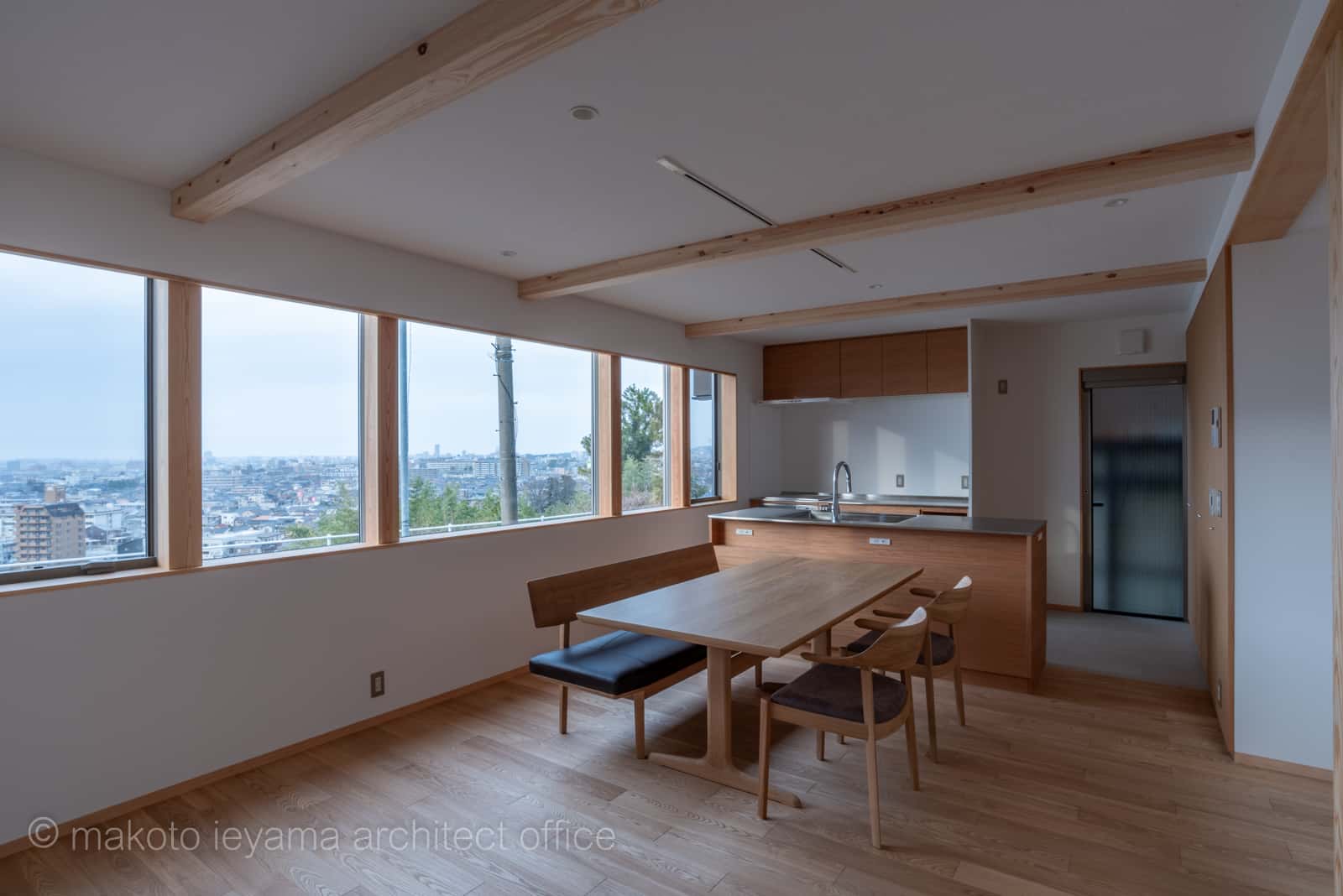 眺望を生かし、生活の中心であるリビング・ダイニング・キッチン空間が一番快適で、物であふれない余白のある空間を求められた。