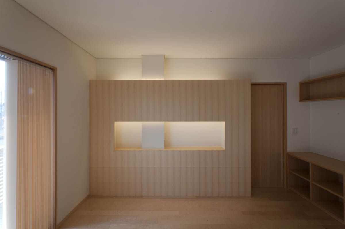 1階と2階の用途が異なるため、外観的に違和感が少なくなるように配慮した。道路面が南側になるため、工場のシャッター上部に木製格子の手摺壁のあるバルコニーを設け、住宅らしさを表現すると共に各居室から出入りのできる半屋外空間とした。階段や水廻りなどの非居住空間を北側の建物背面に配置し、新幹線の騒音に対する備えとした。35帖のリビングは流し台とテーブルを連続させた長さ6.1mのアイランド型キッチンが生活の中心の場となる。
