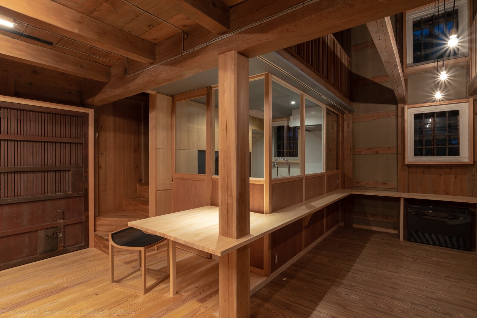 居住者のライフススタイルの変化に伴い、リフォーム会社によって主屋の改修工事が行われた。それに合わせ、土蔵を活用するために、京都から金沢へ移住する作家(木と金属を中心にアクセサリーなどを製作)の息子夫婦が制作と生活の場としてリノベーションを行った。