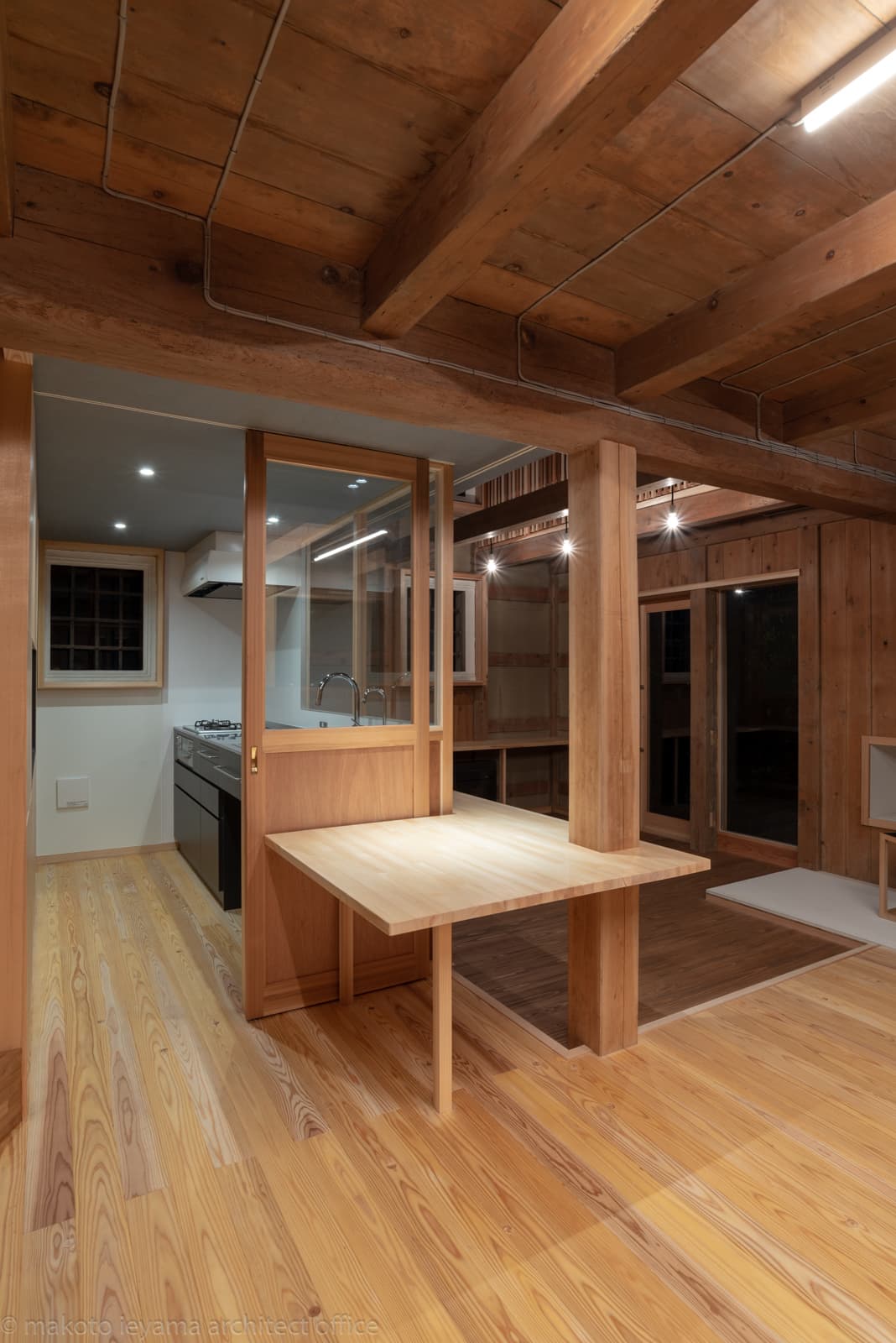 引戸を開けるとテーブルとキッチンが連続し、生活の場となります。