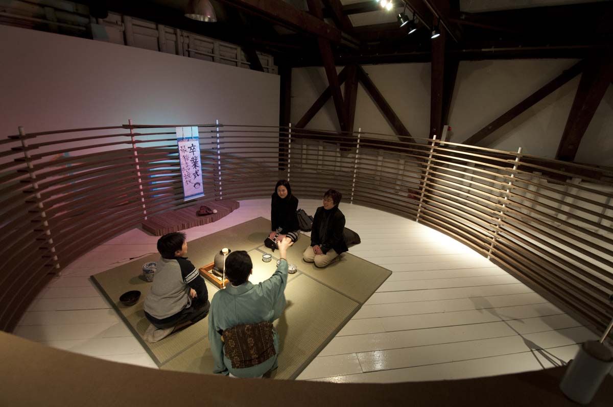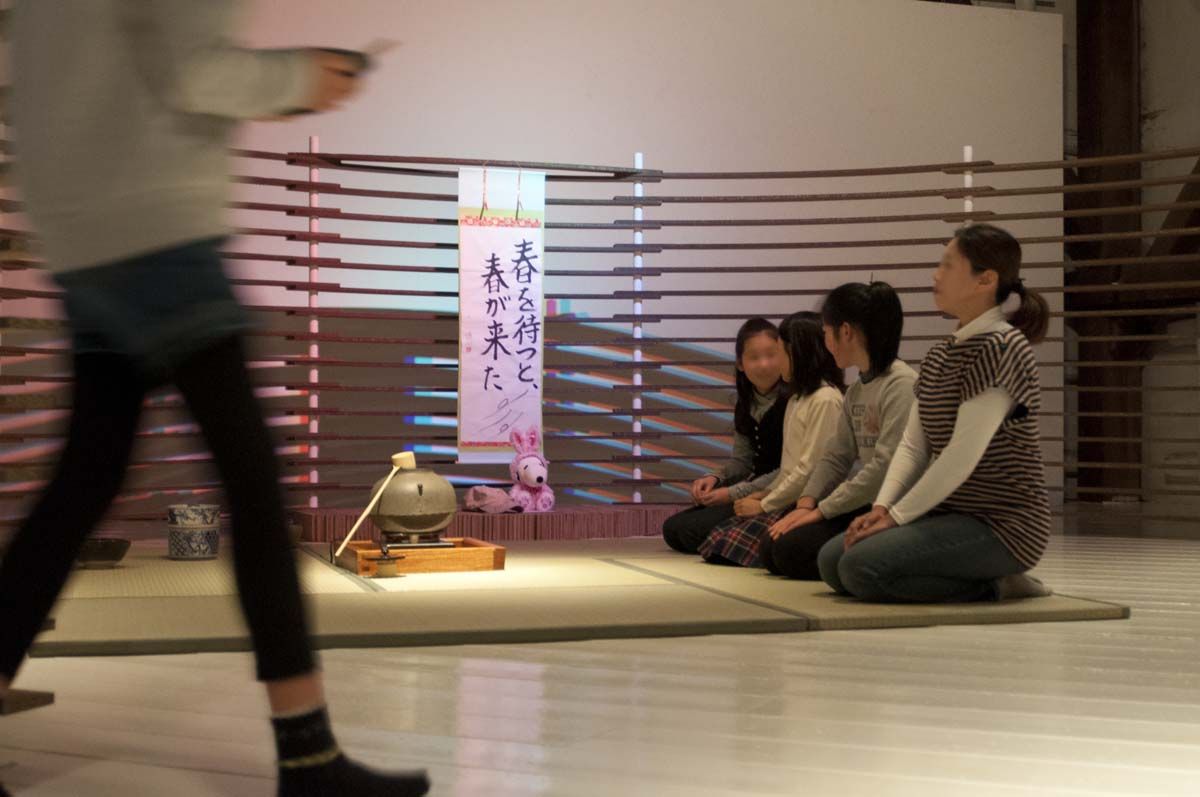 金沢市民芸術村アート工房主催のアート企画。茶会を行うアート企画。亭主となる子供達が床飾り、掛軸、招待状などの制作とお茶会の進め方の指導をうけて開催。この企画は、茶道の伝統を継承することを主な目的とするものではなく、茶室を非日常のコミュニケーション空間と捉え、参加した子供達が仕切られた茶室という非日常空間の中で友達とのコミュニケーションを図り、新たな人との繋がりを感じること、探し出すことが目的の実験的試みです。